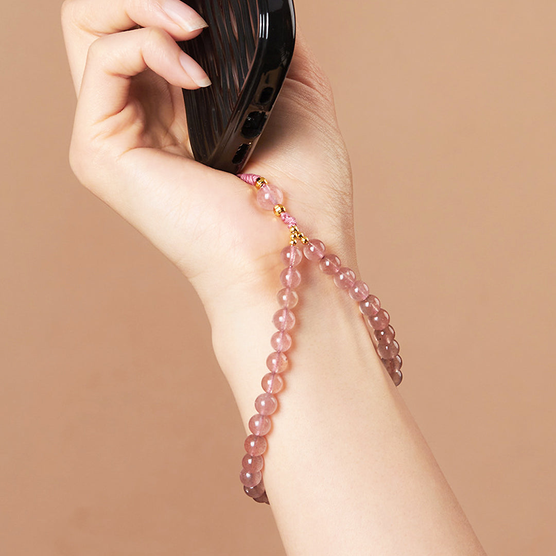 The Strawberry Crystal Bloom CD108 is a delicate expression of love and serenity. Each polished pink bead glows with soft, translucent warmth, reminiscent of tender morning light. Its natural shimmer embodies gentle strength — soothing the heart, easing emotional stress, and nurturing love from within.