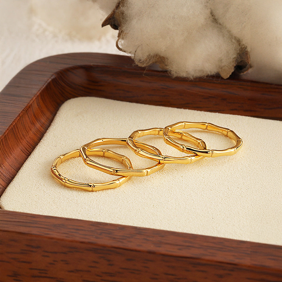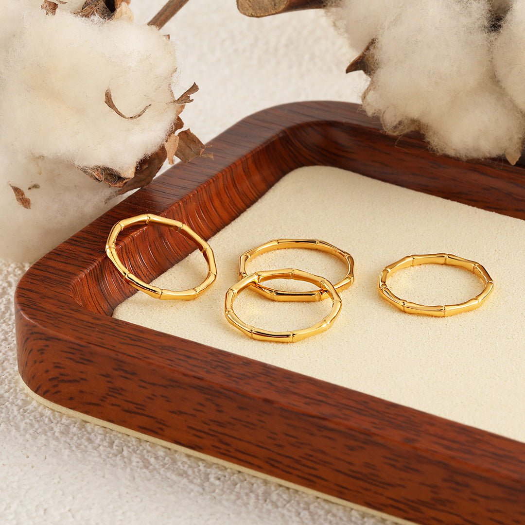 Design: Bamboo-inspired textured band for a natural, minimalist charm