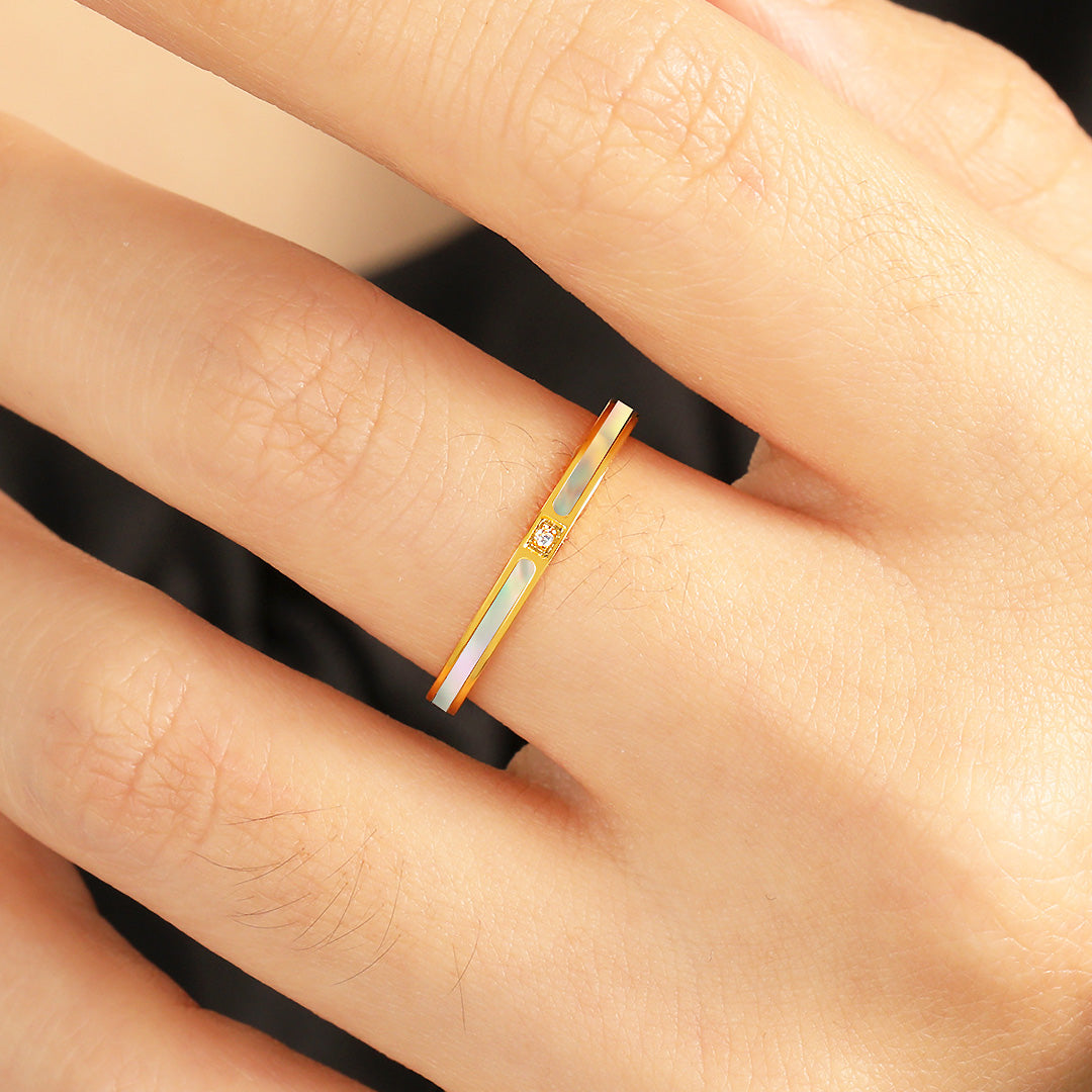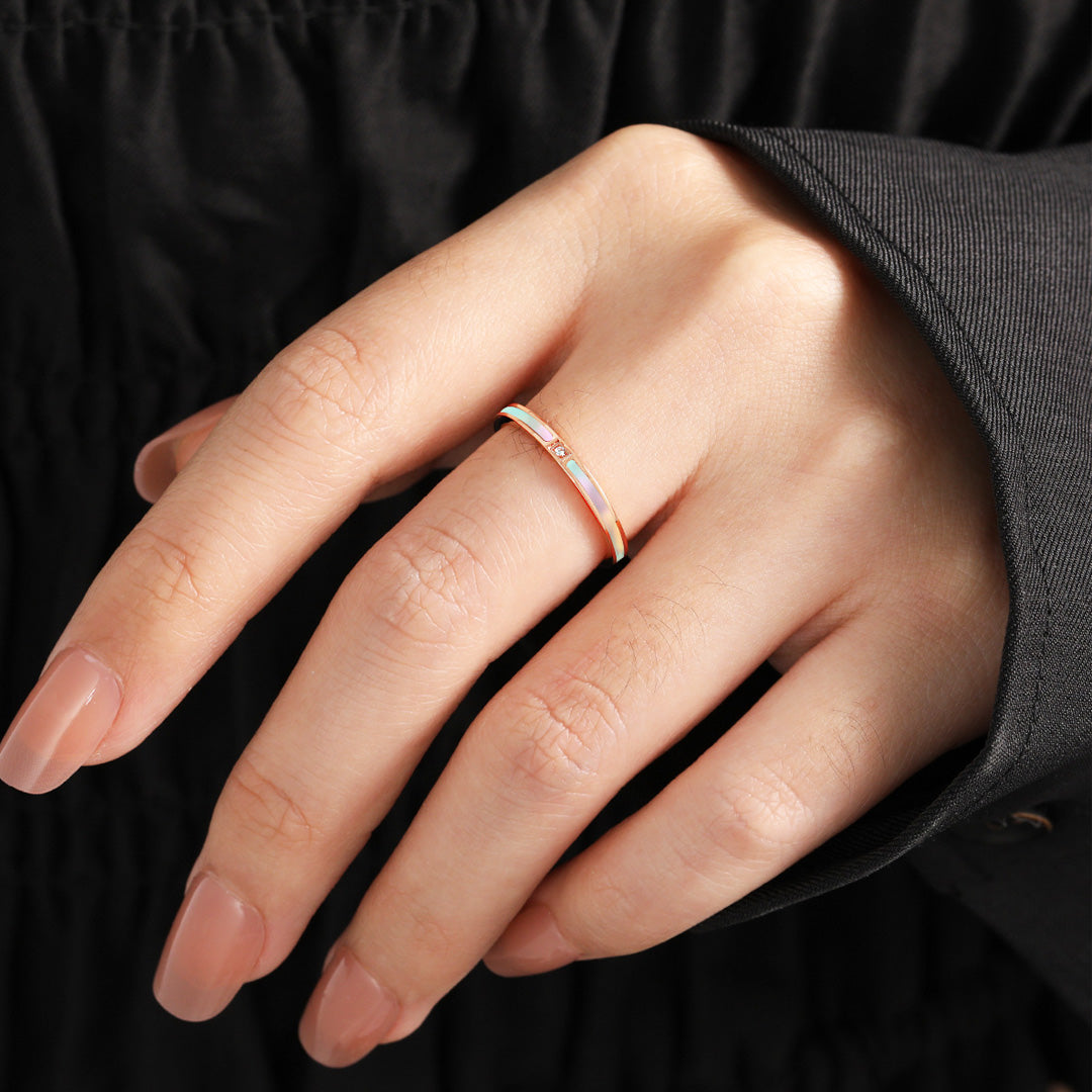 Sleek band with luminous enamel inlay and a single sparkling stone