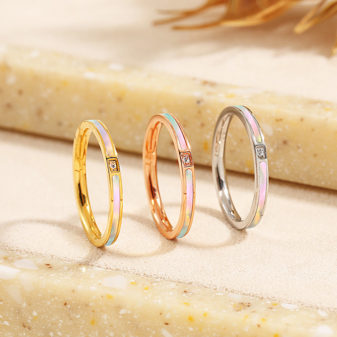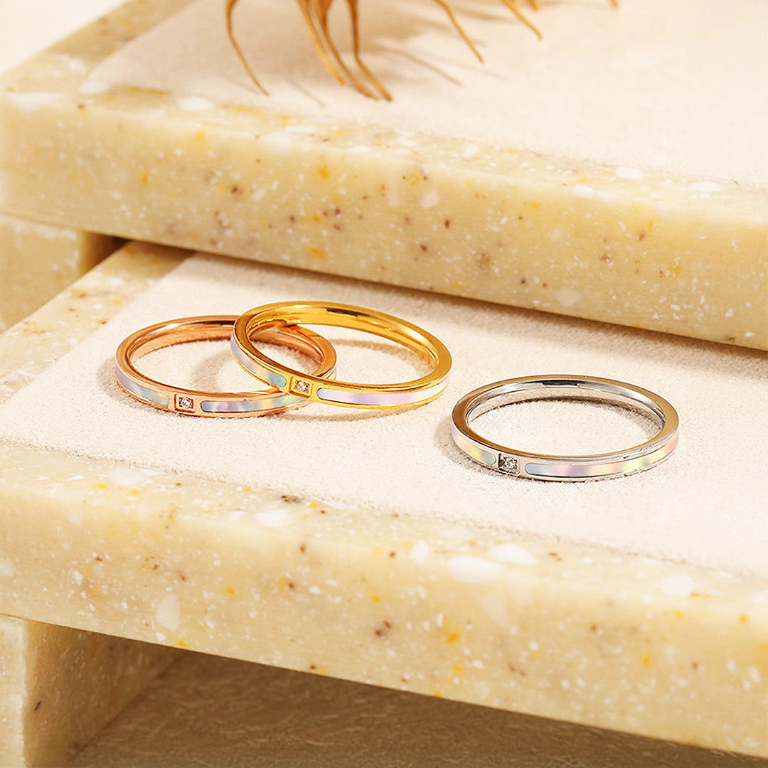Refined and versatile, the Luxe5127 Ring is the perfect everyday piece that transitions seamlessly from casual wear to sophisticated evenings. Crafted in high-quality titanium steel, it is designed to offer lasting brilliance while remaining incredibly easy to care for. With a sleek band enhanced by an iridescent enamel inlay and a single sparkling stone detail, this ring strikes the perfect balance between understated charm and modern luxury.