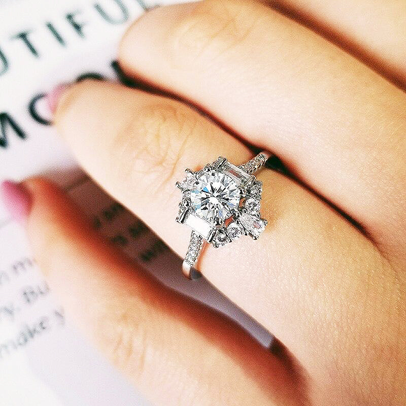 - Top-Grade Cubic Zirconia in Prong Setting.