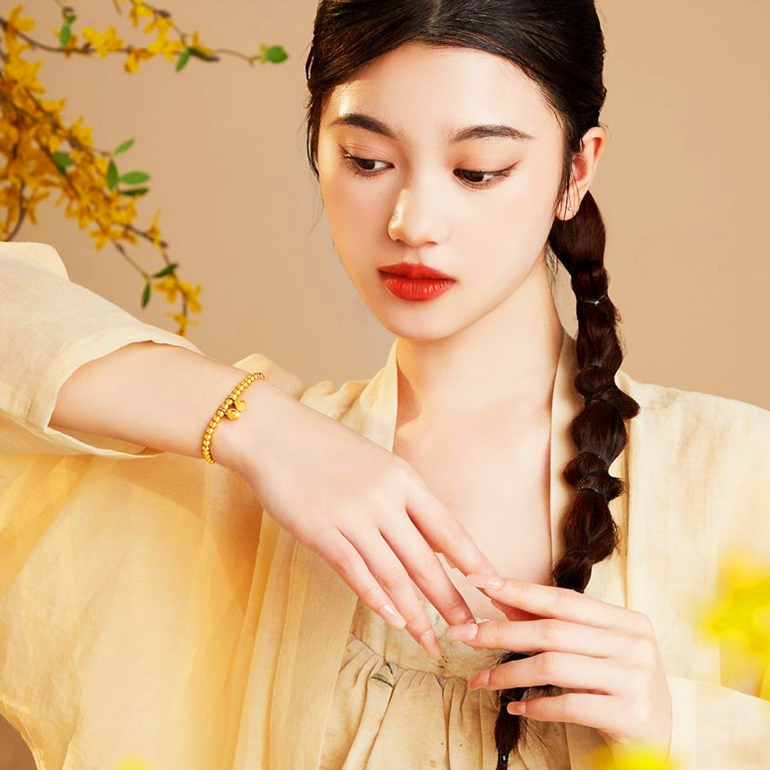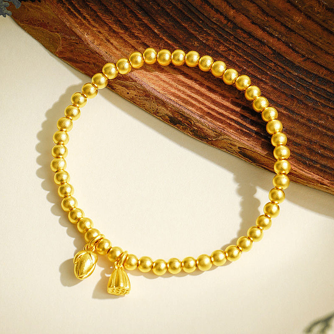 The Luxe6369 bracelet is a stunning piece featuring luxurious gold-plated beads arranged in an elegant elastic band that comfortably fits wrist sizes from 14cm to 18cm. Each bead is coated with five layers of electroplating for enhanced colour protection, giving the bracelet a vibrant, long-lasting shine. Two delicate charms accent the bracelet, adding a hint of tradition and charm to its sophisticated appearance. Its versatile and elastic design makes it perfect for everyday wear while exuding timeless elegance.